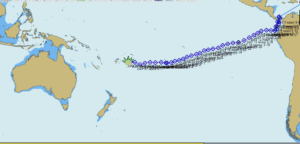 In Summary: Overall we hove to a record eleven times, seven due to adverse weather, and four to work on major gear failures / repairs. We flew every sail configuration possible, and saw wind from every quarter, but remarkably very rarely from the southeast. For the last four days we have been sailing in north and northeast winds. We changed time zones six times, and crossed the date line, so the date here is Jun 15th, UTC +13. Finally, we are so pleased to announce that now that we have made it to Tonga, the forecast is for a solid southeast trades of 10-15kts to fill in once this rain storm passes.
