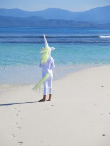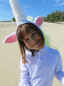 We wound up celebrating Halloween at anchor. Mom and Dad took me trick or treating around the anchorage in my unicorn costume. Most of the boats were taken by surprise so the treats were a bit odd: a package of nuts, a half gone pack of licorice, a couple of granola bars and a mandarin. The next day the SSB radio net said there had been a unicorn sighting in New Caledonia and I got my moment of fame in the South Pacific cruising community.