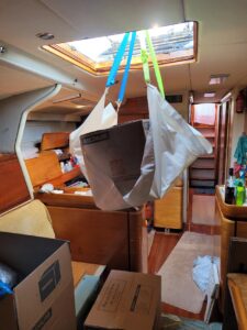 First, there were a myriad of vendor projects that were not quite done – principally our new rig! We suspect anyone out there who has embarked on a major remodel or project is familiar with delays and the week by week waiting game we experienced as vendors relayed “parts are delayed”, “we will get to it next week”, “no room at the yard”. Finally after four weeks of hanging close by so we could be available at a moment’s notice when said parts/labor/space became available, Kailani pulled in alongside the work dock and we watched in awe as our newly refurbished mast and rig was installed by crane. The rig was put in place, sails were re-installed, and we were hopeful to start sailing. But, once again, we were informed of a delay related to the improper machining of certain critical back-stay elements, which meant we were 99% there, but the lack of that final 1% precluded taking any offshore sailing journeys. Having been dis-masted at sea once before due to a blown back-stay (our first boat, our 4th date, our first coast guard “rescue” … a story for another time) this was something we took very seriously.