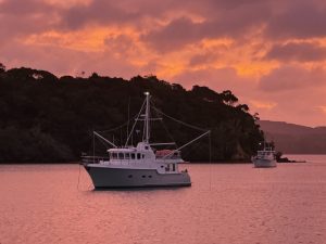 Our last post was very prophetic, because a week later news came that a Category 3 hurricane would make landfall in New Zealand here in the Bay of Islands. Back we headed to Opunga