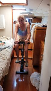 Finally, there is the occasional load of laundry (literally only one so far). On top of those chores, I try to get some daily stretching, pilates spring work or bike time in to keep from melting away. Harley on the other hand keeps fit by fixing all that needs it (which has been blessedly little so far, touch wood). One of the only things easier on a boat at sea than on land is trash management: everything except plastic goes overboard. Sorry all you eco-warriors, these are the maritime rules when greater than 25 miles from land.