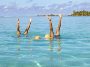 And so, we harken back to memories of the last time we sailed these Polynesian waters 20 years ago – hence the throw-back photo above, a delightful anchorage on the island of Taha’a where we spent Thanksgiving in 2004. Anyway, in an effort to get you all to read our musings, we lured you in with a picture of ourselves taken on that day and I’m sure you’ll agree we haven’t changed a bit.