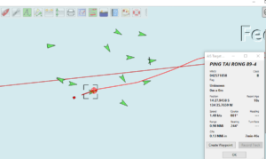We also get asked about fishing out here. We have thrown out our lines still to no avail, and honestly after passing through a fleet of Chinese fishing boats earlier on our run (see screenshot below), feel more dispirited about our poor ocean and how many fish there actually may still be out here. But we will continue to put out our meat line, with the “priest” (basically a billy club) ready to go if we manage to hook one and supplement our protein supply.