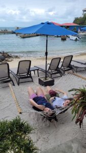 Our last days in the BVI were a slow rambling through the island chain in the delightful company of Sophia and her friend, Sam, who joined us for the last half of their spring break. Life was slowed down for our crew with late risings and lazy days interspersed with swimming, snorkeling and the occasional venture ashore all capped off by an after-supper movie drawn from the archives of Kailani favorites. But all too soon it was time to say goodbye to the girls and send them back to their pressure cooker school lives while we turned up the heat to prepare Kailani for the arrival of crew for the Caribbean crossing and get Jen off to California to the wedding of her godson.
