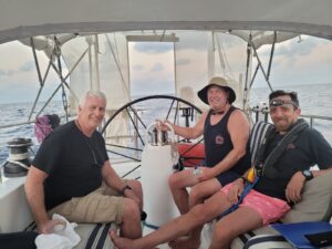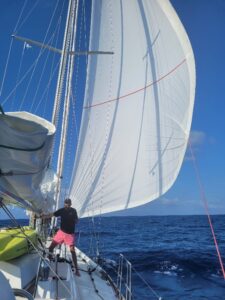 The final crewmember, Randall (dubbed Russell when he came aboard by the first mate because after all, us aging sailors can’t remember names from one moment to the next) proved to be one of the more enthusiastic crew that have crossed Kailani’s gunnels. Although his sailing experience might be limited, he was quick to volunteer for everything that needed doing, donning his knee pads and sailing gloves and just getting after it. The life experiences of both new crew members kept us entertained through the long boring parts of the passage.