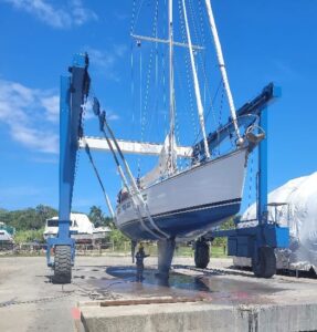 So what do you do with all that free time? What else but work on the boat. There is a boat yard here, so we hauled out for a long overdue bottom job. Labor costs are lower than the States although the price of paint is staggering, almost twice what you can get it for back home. With any luck we’ll splash back in by the end of this week and we’ll have a couple of weeks to spend over in the San Blas, a pretty magical place 75 miles to the east. We spent time there back in 2006 aboard Manu Kai, and it will be a litmus test to see how much the world of the cruising sailor has changed over almost 20 years.