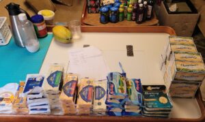 In all, we shopped nine separate times, and now have aboard enough provisions to basically get us to New Zealand in November. While we will supplement with some staples like eggs, flour, sugar, rice and fresh fruit and vegetables in the islands between now and then, everything else needed has been acquired. What does seven months of provisions look like? Highlighting some of the quantities for items we are most queried about: