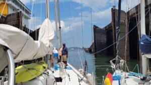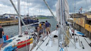 Sailboats are typically rafted together and put in the lock with a ship, maximizing transits for the Canal.