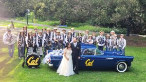 The wedding and surrounding events were every bit of fantastic – laughing with family and friends I have not seen in decades and meeting their fully grown up children was a delight. At one point I remarked to Pepe – “can you believe we started at Cal 40 years ago?” Surely we did the math wrong … we certainly don’t feel that old! It was a fun-filled weekend, replete with many a “Go Bears” cheer throughout the toasts. And when I say Go Bears, this family is all about the Blue and Gold. First there is the famous Cal 55 T-Bird (license plate reads “55TBEAR”; is owned by Pepe and Carol; is where Pepe proposed to Carol on Big Game day… the list could go on and on), the Cal Band came to serenade the newlyweds, the reception was at the beautiful faculty club in the heart of the Cal campus, and the the décor was blue and gold, right down to the labels of the chosen wines. It was a great time.