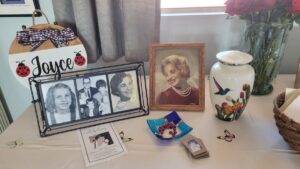 During that week we laughed, we cried, we shared stories of our childhood memories, Jason serenaded Mom (she always loved him singing country songs to her) and Jeff and Jason did their specialty dances for her (the “running man” and “the macarena”). We laughed so hard we cried. We played some of her favorite songs for her in her last hours, and we held her hands as she drew her last breaths: she was peaceful and comfortable, and finally released from this illness. Dementia is called the “long goodbye” … because it is just that. It has been a couple years since my Mom knew who we were, but we still spent as much time with her as possible, making her laugh when she could, giving her love and making sure she had the care she needed throughout the decline of this illness. She went out with grace, and will be missed. For me however, I take comfort in feeling like I can finally talk to her again and she knows who I am. We have a lot to catch up on.